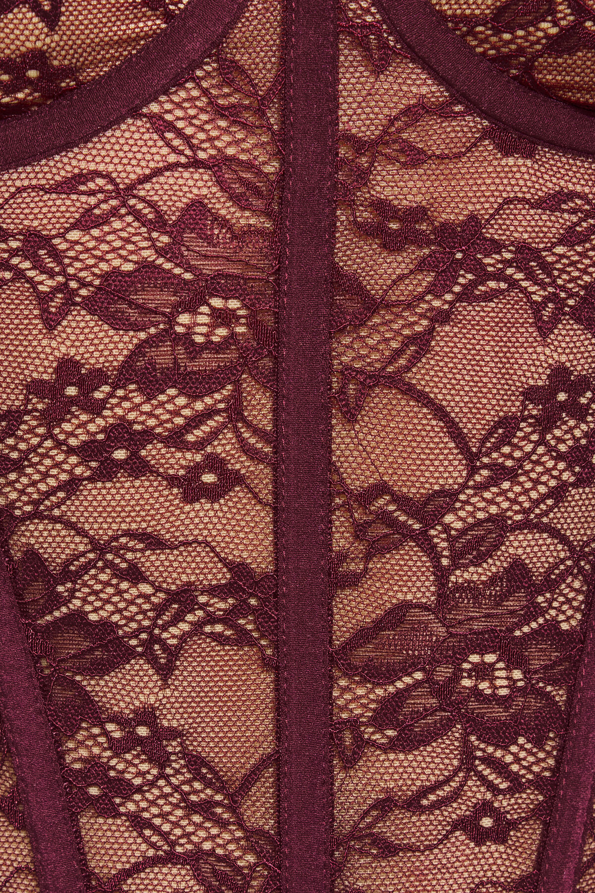 Amaya Lace Bustier Top Burgundy women – Bye, hyperfixating on this bustier for the week! Features Adjustable and detachable shoulder straps Underwire at padded cups Adjustable hook-eye closure at back Floral lace detailing Size & Fit Fit: Fitted, stretchy Length: Cropped Model is wearing size S Materials & Care Content: 90% nylon, 10% spandex Care: Machine wash, cold Imported