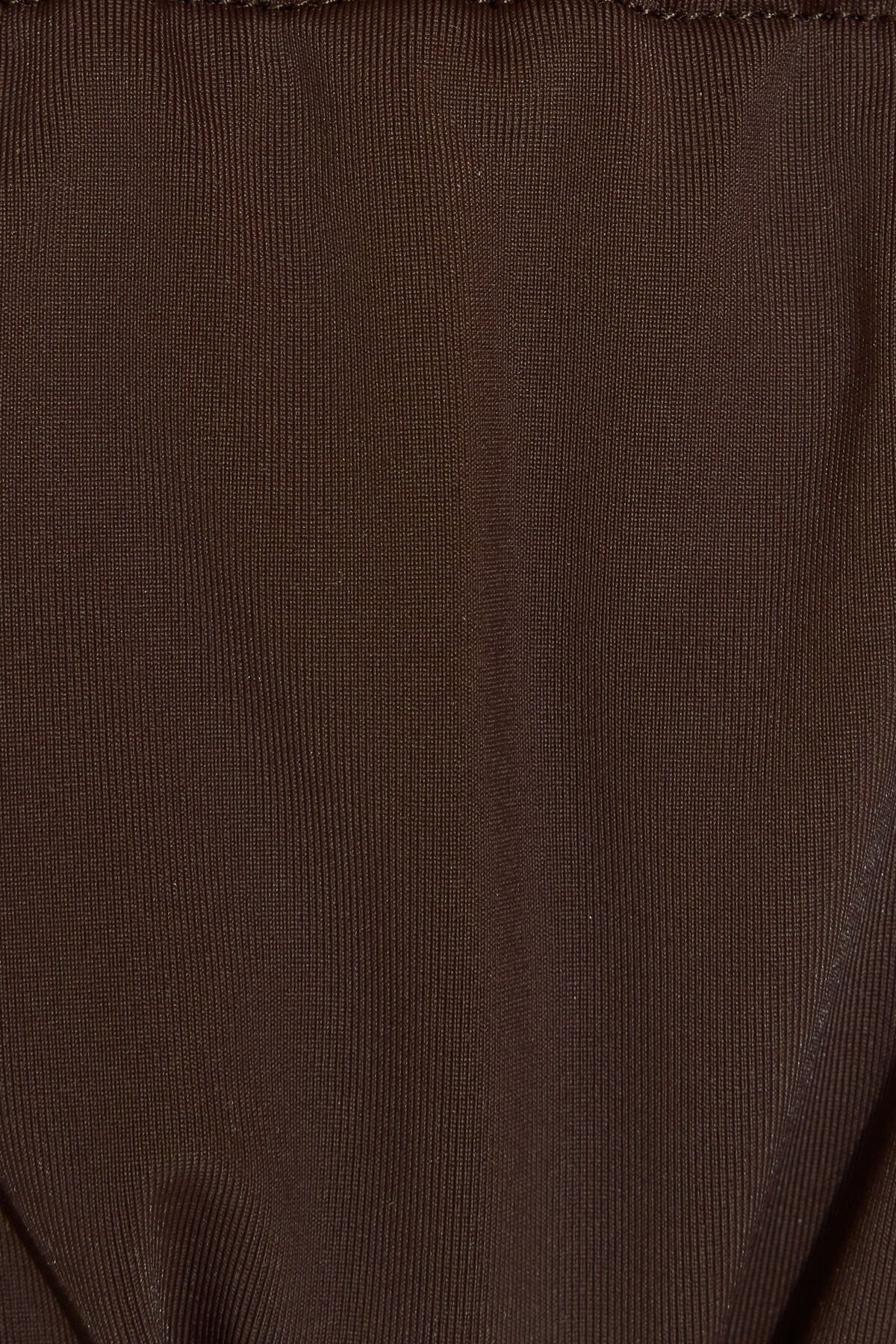 Ruched Side Tie Bikini Bottom Brown women – Beautiful girl stuns at beach after removing big tee to reveal perfect bikini . Features Side-ties Doubled lined Stretchy Size & Fit Coverage: Very cheeky! Model is wearing size S Materials & Care Content: 85% recycled nylon, 15% spandex Care: Machine wash, cold Imported